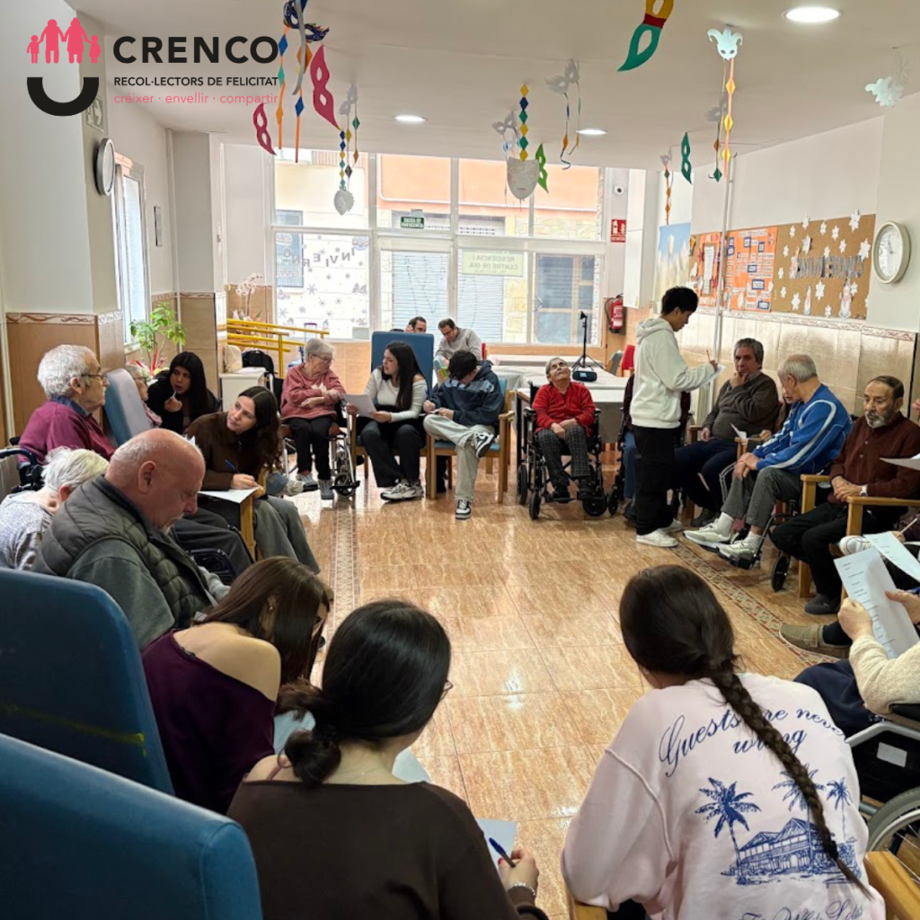 Avui hem continuat amb el treball intergeneracional a través d’una dinàmica de sons. Sons com els somriures, una porta que s’obre, la pluja i els trons, un telèfon antic, el bosc o les campanades de Cap d’Any han activat records, converses, curiositat, emocions i imaginació compartida entre participants de diferents edats.